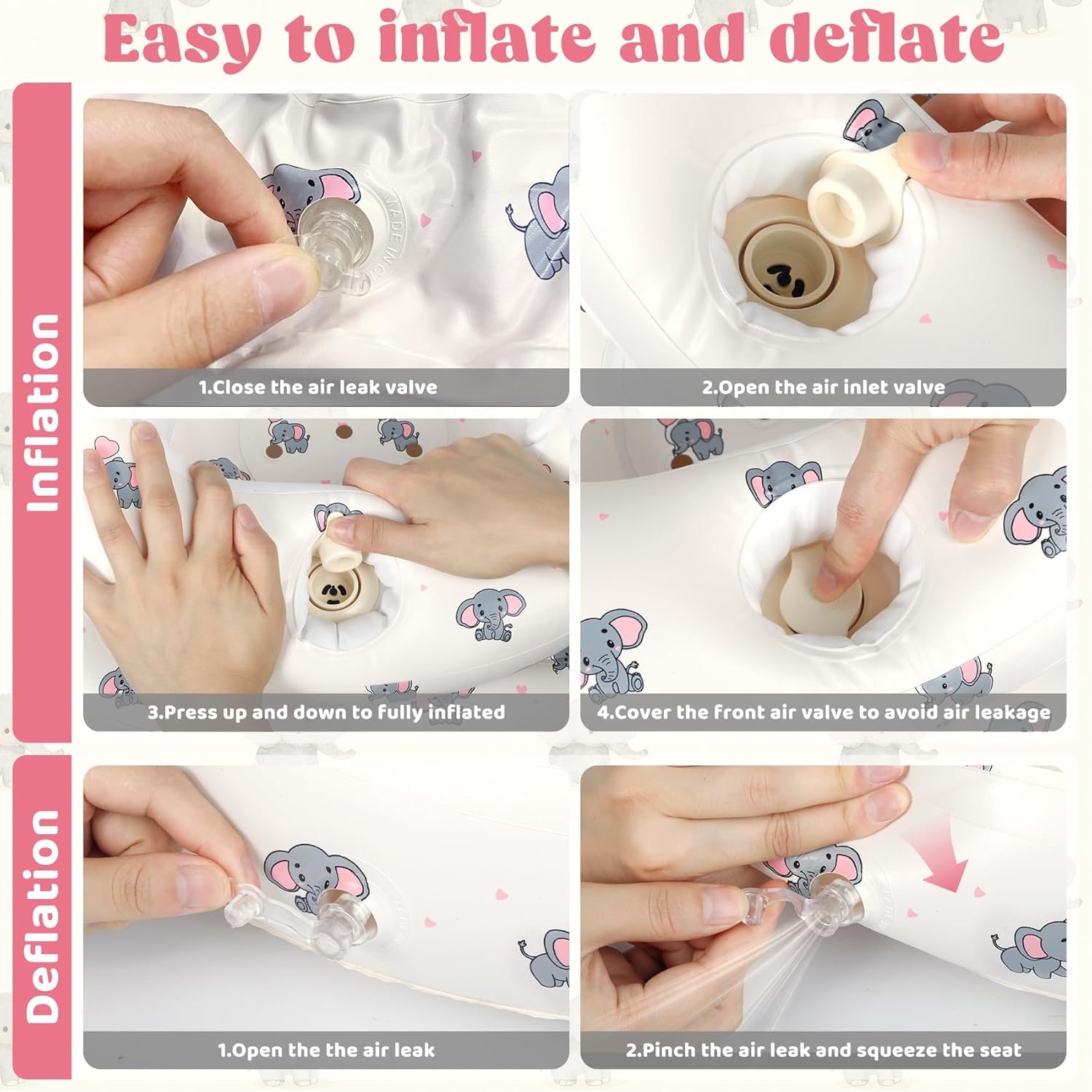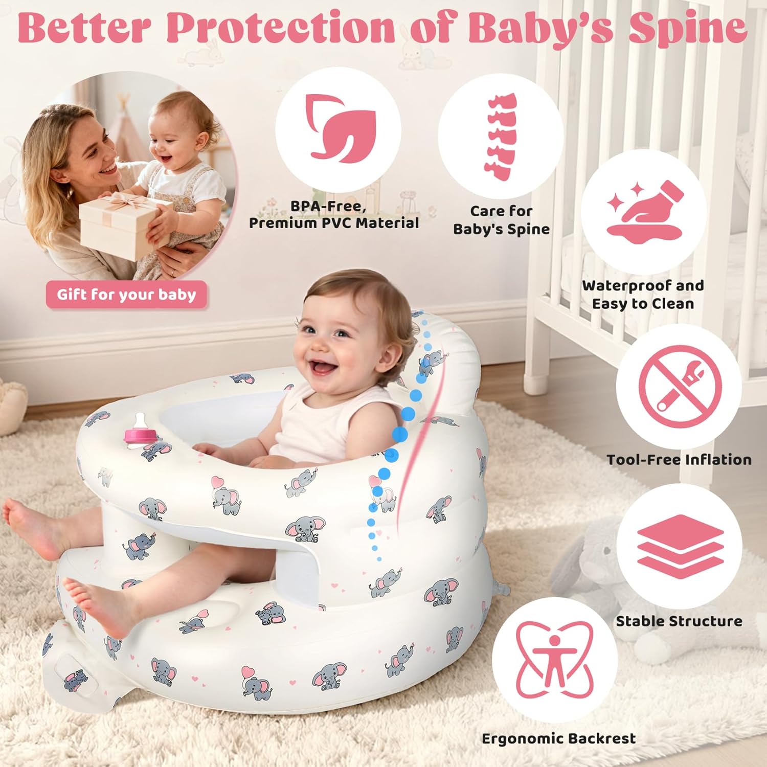 • Adorable Elephant Theme – Cute elephant-inspired look makes this baby seat visually fun and engaging for little ones while adding a playful touch to nursery or play area. (Typical of themed inflatable baby seats with animal designs)