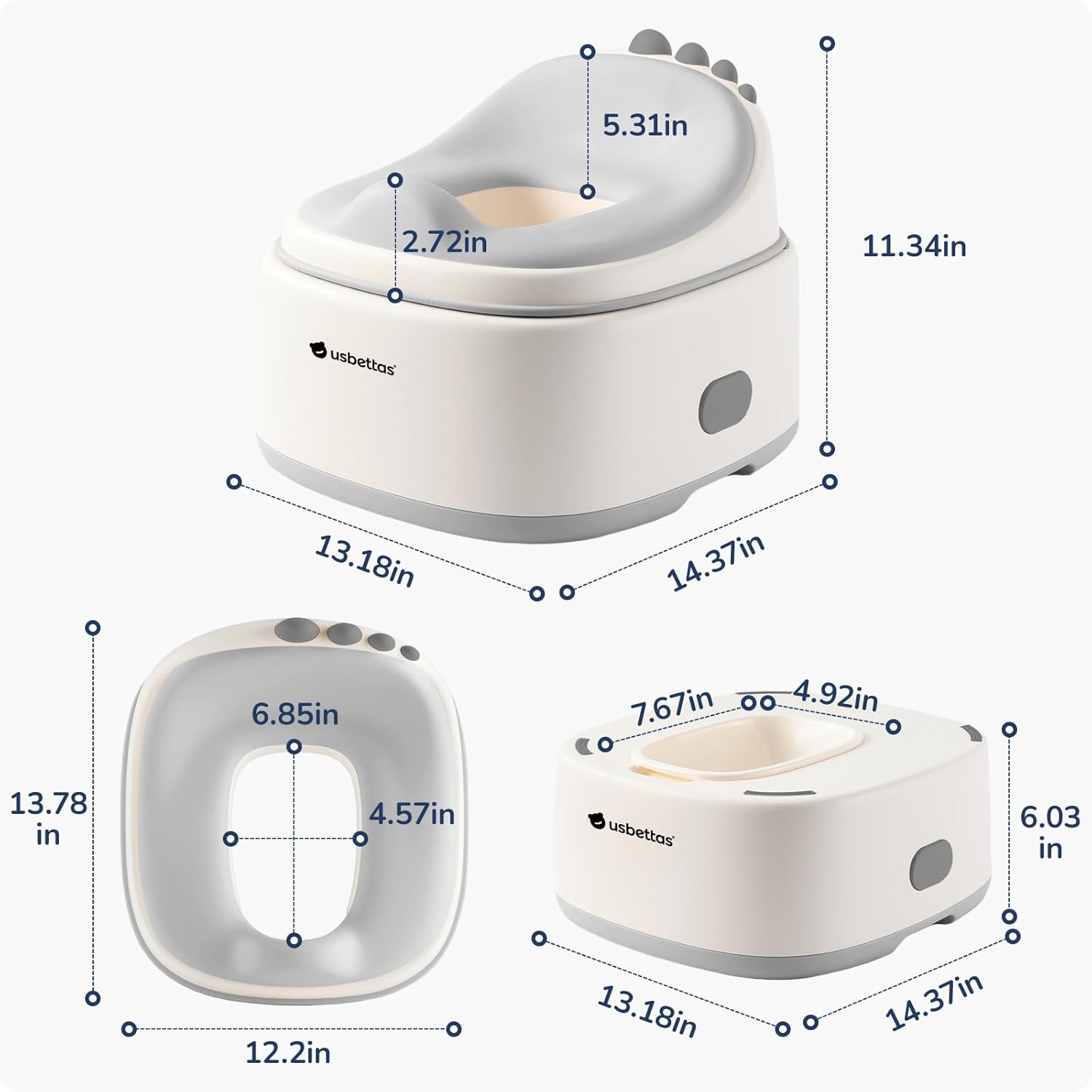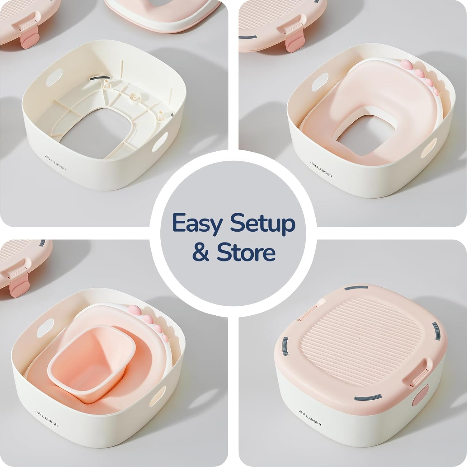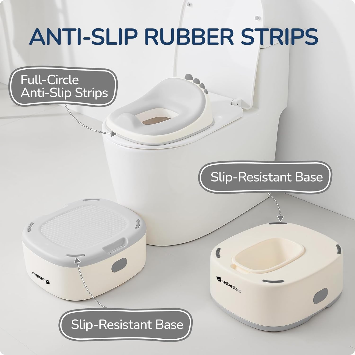 - Anti-Slip Base for Safety: Equipped with a non-slip bottom that keeps the potty stable and secure on floors and bathroom surfaces.